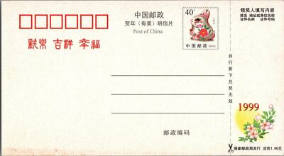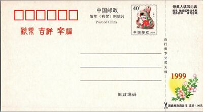 China PRC Lottery Postal Card MNH 1999 Year of Rabbit Flowers Roses ZAYIX 050522SM03