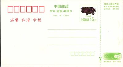 China PRC Lottery Postal Card MNH Year of Pig Herding Swine Agriculture ZAYIX 050522SM02