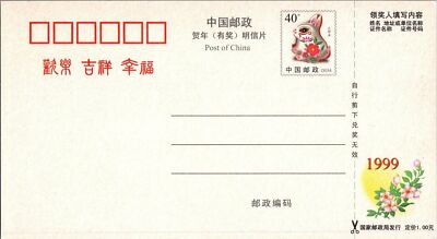 China PRC Lottery Postal Card MNH Lunar New Year 1999 Dancing Rabbit ZAYIX 050522SM09