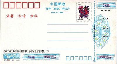 China PRC Lottery Postal Card MNH Year of the Rooster Communications ZAYIX 050122SM74