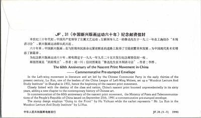 China PRC Postal Stationery Nascent Print Movement Art pre-stamped JF.31 ZAYIX 050522SM67