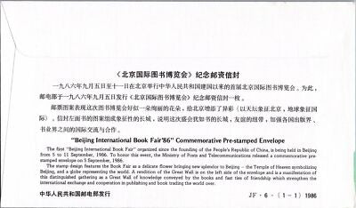 China PRC Postal Stationery International Book Fair Pre-stamped Env JF-6 ZAYIX 050522SM64