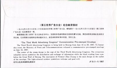 China PRC Postal Stationery World Advertising Congress Pre-Stamped Env ZAYIX 050522SM53