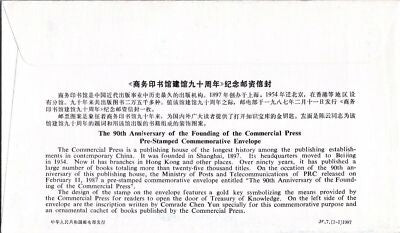 China PRC Postal Stationery 90th anniversary Commercial Press Pre-stamped ZAYIX 050522SM55