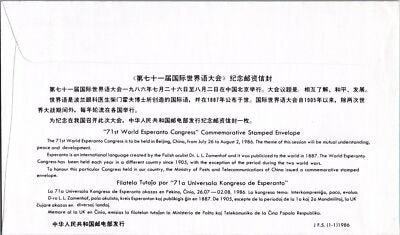 China PRC Postal Stationery 1986 World Esperanto Congress Pre-Stamped ZAYIX 050522SM63