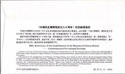 China PRC Postal Stationery Museum of Chinese History pre-stamped JF.37 ZAYIX 050522SM69