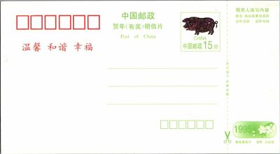 China PRC Lottery Postal Card MNH Pig Pencil Rocket New Year ZAYIX 050522SM01
