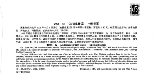 China PRC First Day Cover Andersen's Fairy Tales, ducksSTAMPS ZAYIX 0924M0559