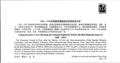 China PRC 2564 Popularity Poll for Best Stamps Cover PFN-75 ZAYIX 052922SM31