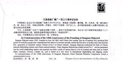 China PRC Event Cover Anniversary of Jianguan Shipyard ZAYIX 0924M0597