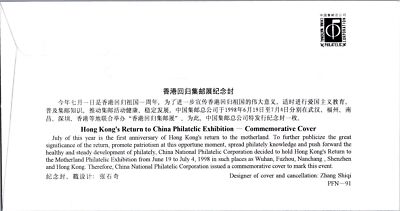 China PRC Event Cover Hong Kong Return Philatelic Expo PFN-91 ZAYIX 052922SM45