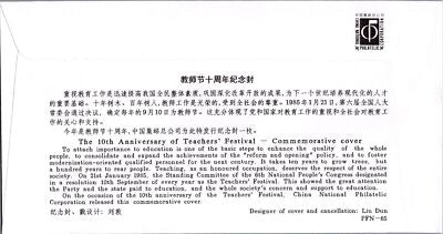 China PRC Event Cover 1994 10th Annual Teachers Fest PFN-65 ZAYIX 052922SM47