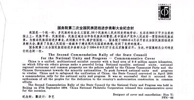China PRC Event Cover Commendation Rally National Unity ZAYIX 0924M0601