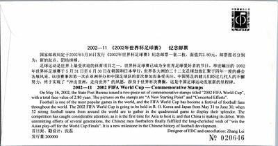 ZAYIX China PRC - First Day Cover - FDC - 2002 FIFA World Cup Soccer - Sports