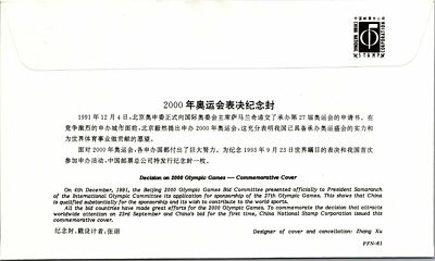 ZAYIX China PRC - First Day Cover - FDC Sports - 2000 Decision on Olympic Games