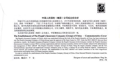 China PRC Event Cover, People's Insurance Company Establishment Zayix 0924M0718