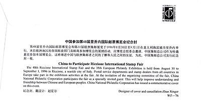 China PRC Event Cover, Riccione Int'l Stamp Fair Zayix Stamps 0924M0714