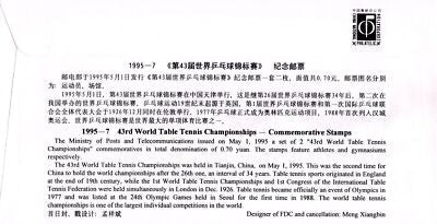 ZAYIX China PRC First Day Cover FDC World Table Tennis Championship 0924M0637