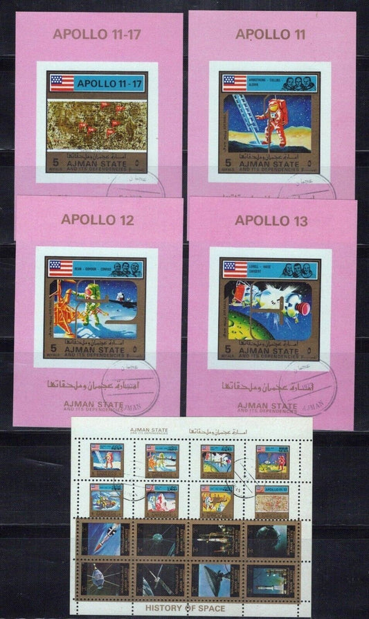 Ajman Deluxe Sheets / Minisheet CTO Space Apollo Rockets ZAYIX 0424M0065