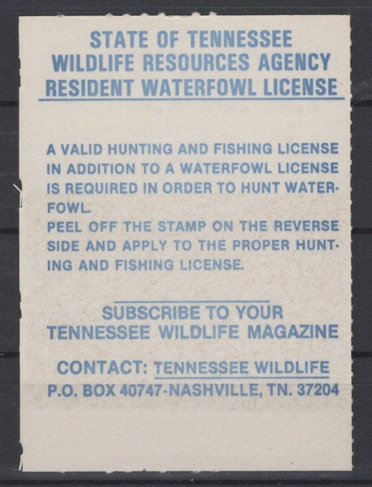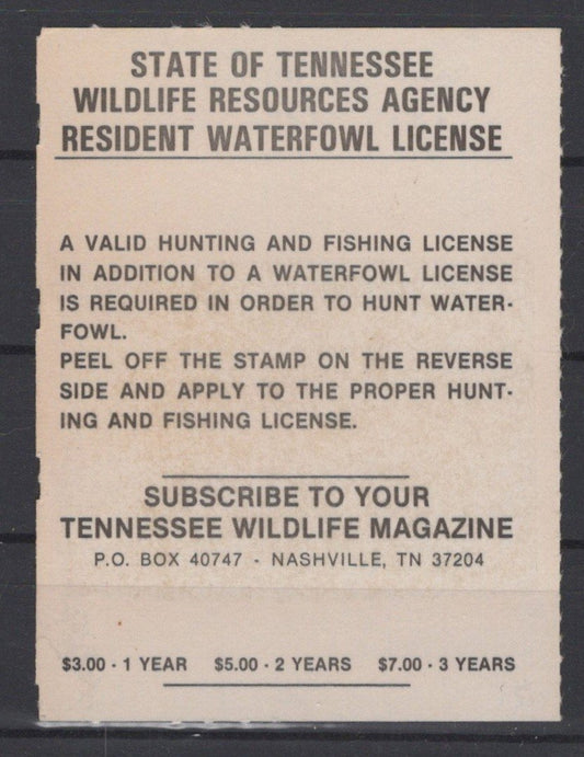 Tennessee 11 Mint VF State Hunting Permit Duck Stamp Revenue Zayix 0825RB1811