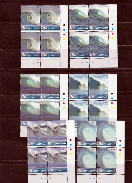 Micronesia 786-795, 799 MNH Surfing Definitives Plate Blocks ZAYIX 0825L1762