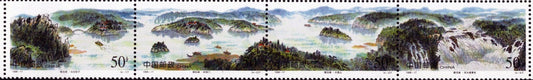 ZAYIX China PRC 2886a MNH Jingpo Lake Waterfall boats strip 100422SL03M