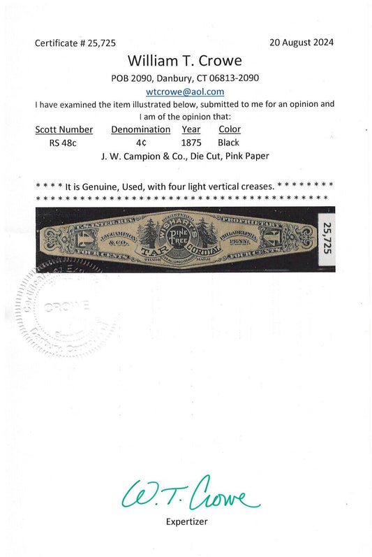 US Revenue Medicine RS48c XF JW Campion & Co, Pink Paper ZAYIX 1224MAR016