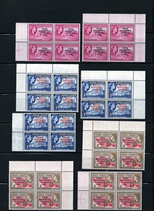Ghana 5-10, 13 MNH Gold Coast Overprint Blocks ZAYIX 0625L0005