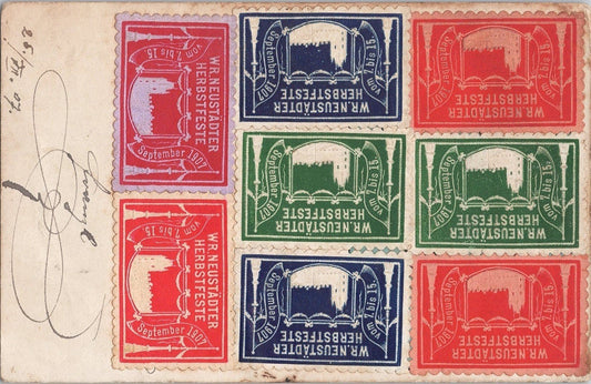 ZAYIX German School Assoc & 1907 WR. Neustadter Herbsfeste Labels Tied Postcard