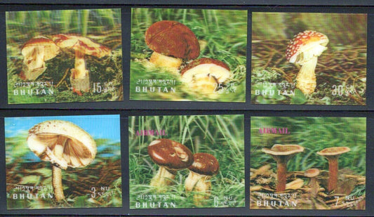 Bhutan 154-154E, 154Cf-154Eg MLH 3-D Fungi Mushrooms Plants ZAYIX 0624M0082