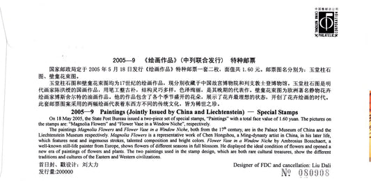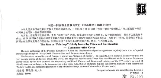 China PRC FDC Paintings Joint Issue LiechtensteinSTAMPS ZAYIX 0924M0554