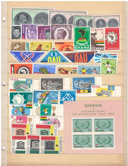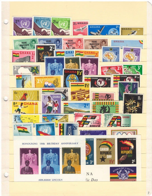 Explore the vibrant philatelic heritage of Ghana with our carefully selected collection of collectible postage stamps. Situated along the Gulf of Guinea in West Africa, Ghana—formerly known as the Gold Coast—has a rich postal history that reflects its journey from colonial rule to independence. The country's first stamps were issued in 1875 under British colonial administration. Following independence on March 6, 1957, Ghana released its inaugural stamps by overprinting existing Gold Coast issues with "GHANA INDEPENDENCE 6th MARCH 1957" and another set featuring the new president and a map of the country. Since then, Ghana has produced a diverse array of stamps celebrating its cultural heritage, natural beauty, and significant national events. This collection offers a unique glimpse into Ghana's identity, making it a valuable addition for both seasoned collectors and those new to philately.