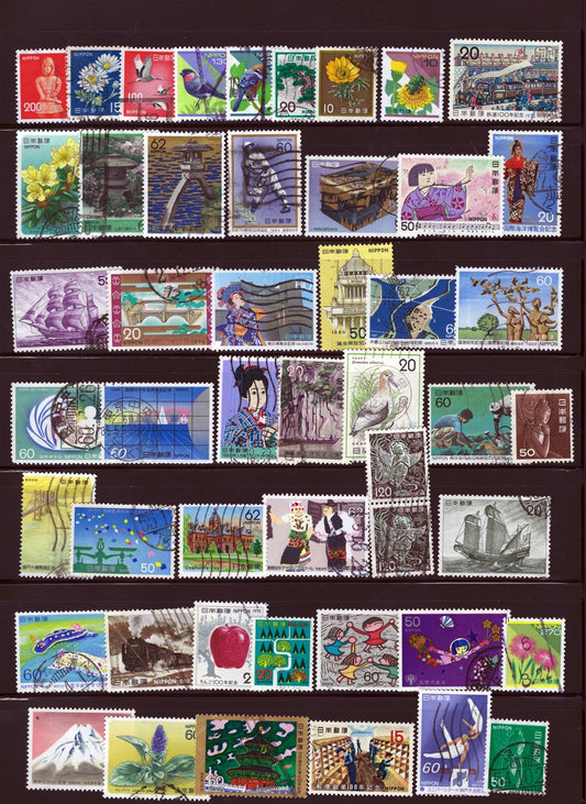 Japan Used Collection of 337 Different Stamps on 7 Stock Pages ZAYIX 0525L0006