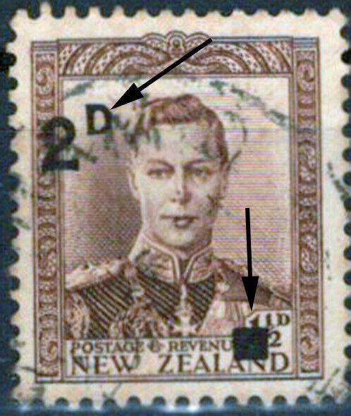 New Zealand 243 Used Overprint Shifted Down EFO with comparison ZAYIX 0324S0035