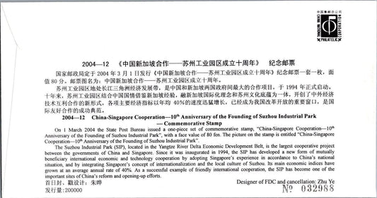 China PRC Mi 3518 FDC China-Singapore Cooperation ZAYIX 101822SM12