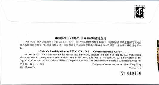 China PRC First Day FDC BELGICA 2001 Pottery Art ZAYIX 040922SM19