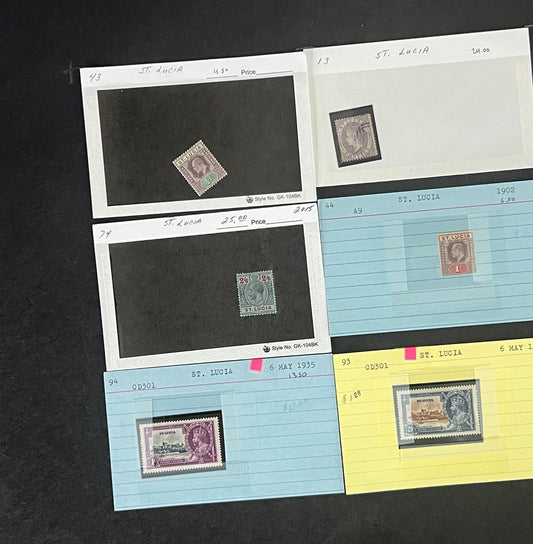 St. Lucia Stamp Collection on Dealer Cards $327 Catalog Value ZAYIX 0825CB14518