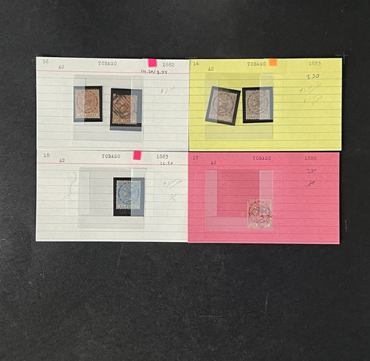 Tobago Stamp Collection on Dealer Cards $87 Catalog Value ZAYIX 0825CB14566