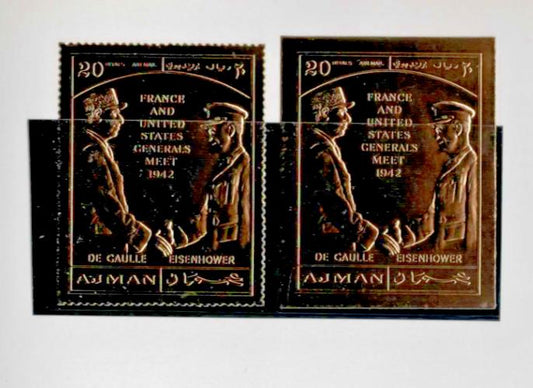 ZAYIX Ajman 654 A, B MNH Gold Foil Eisenhower De Gaulle Military 080323SM28