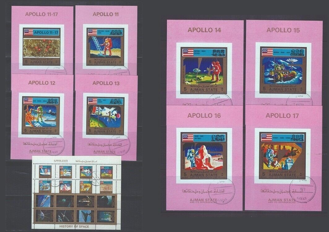 Ajman Deluxe Sheets / Minisheet CTO Space Apollo Rockets ZAYIX 0424M0065