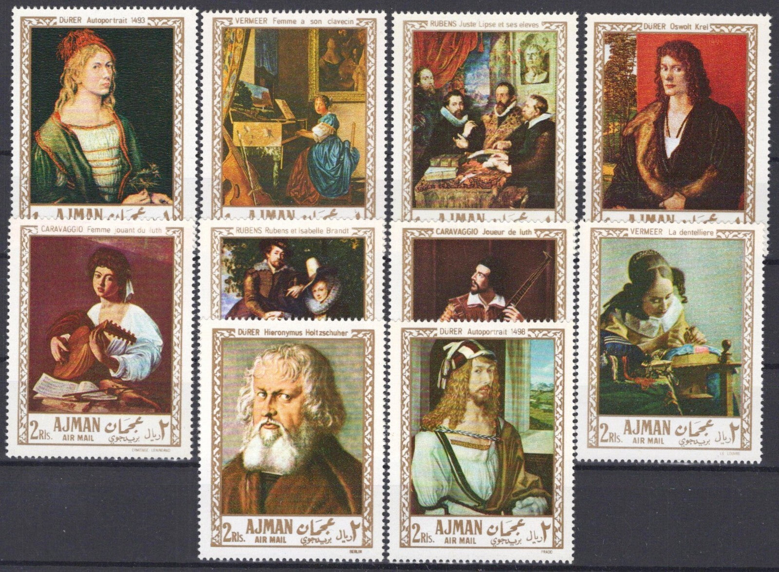Ajman Mi 225-234 A MNH Art Paintings Durer Vermeer ZAYIX 022822S13