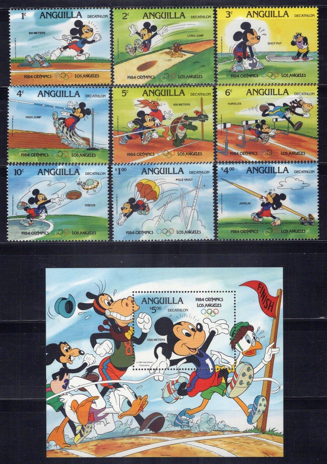Anguilla 559a-568a MNH Disney Decathlon Los Angeles Olympics ZAYIX 0701M0055