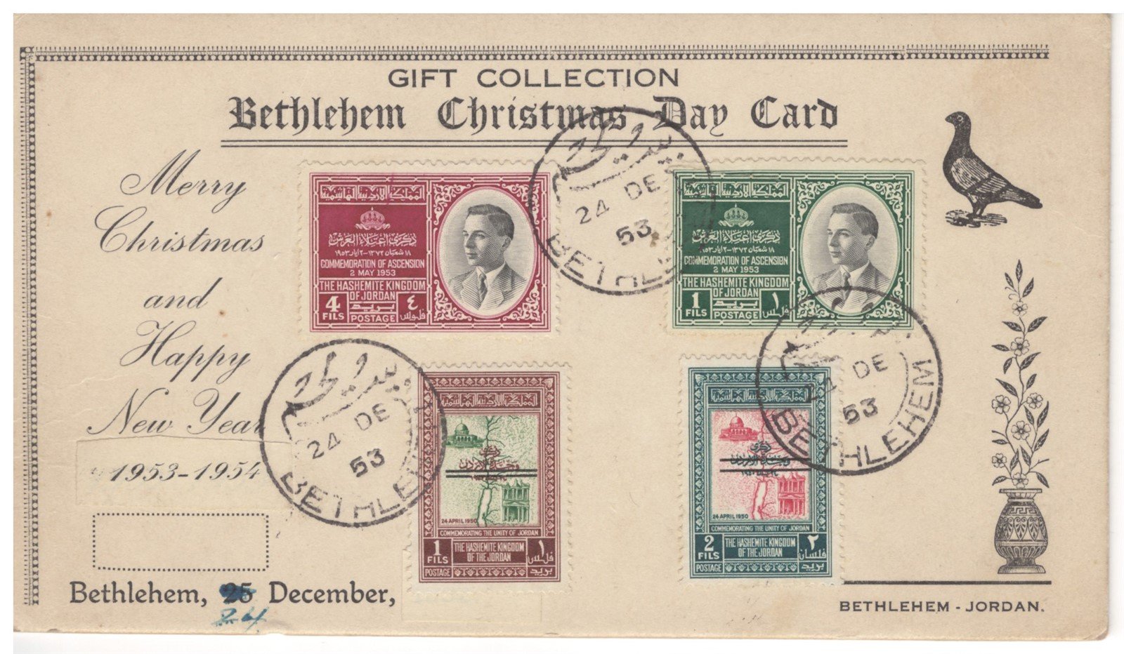 Bethlehem Xmas Eve Card Rare Narrow Overprint Jordan Used in Palestine 0825M4240