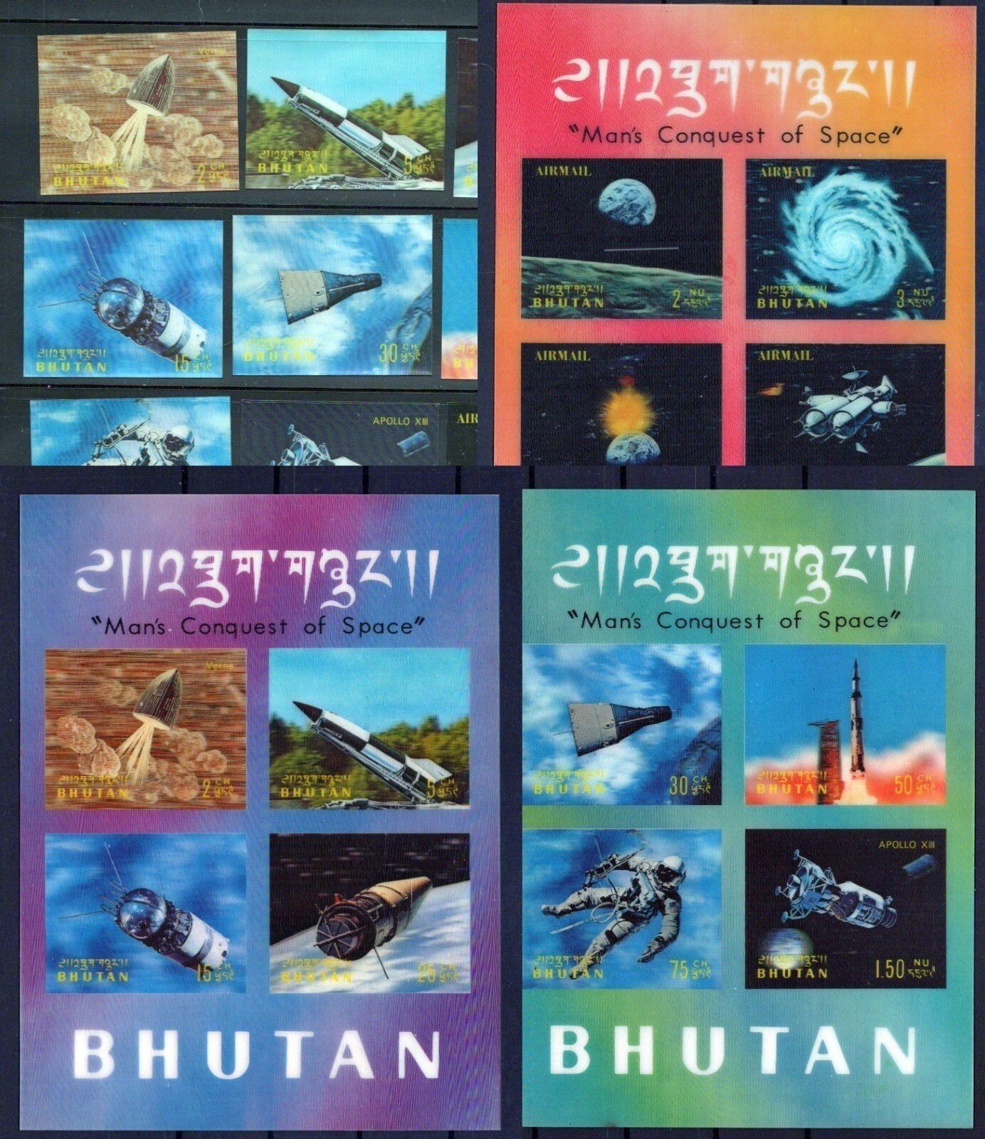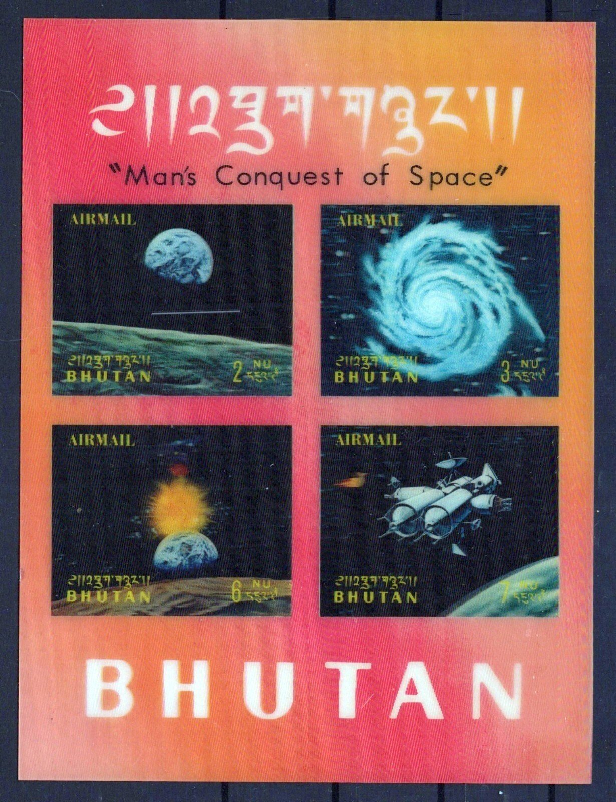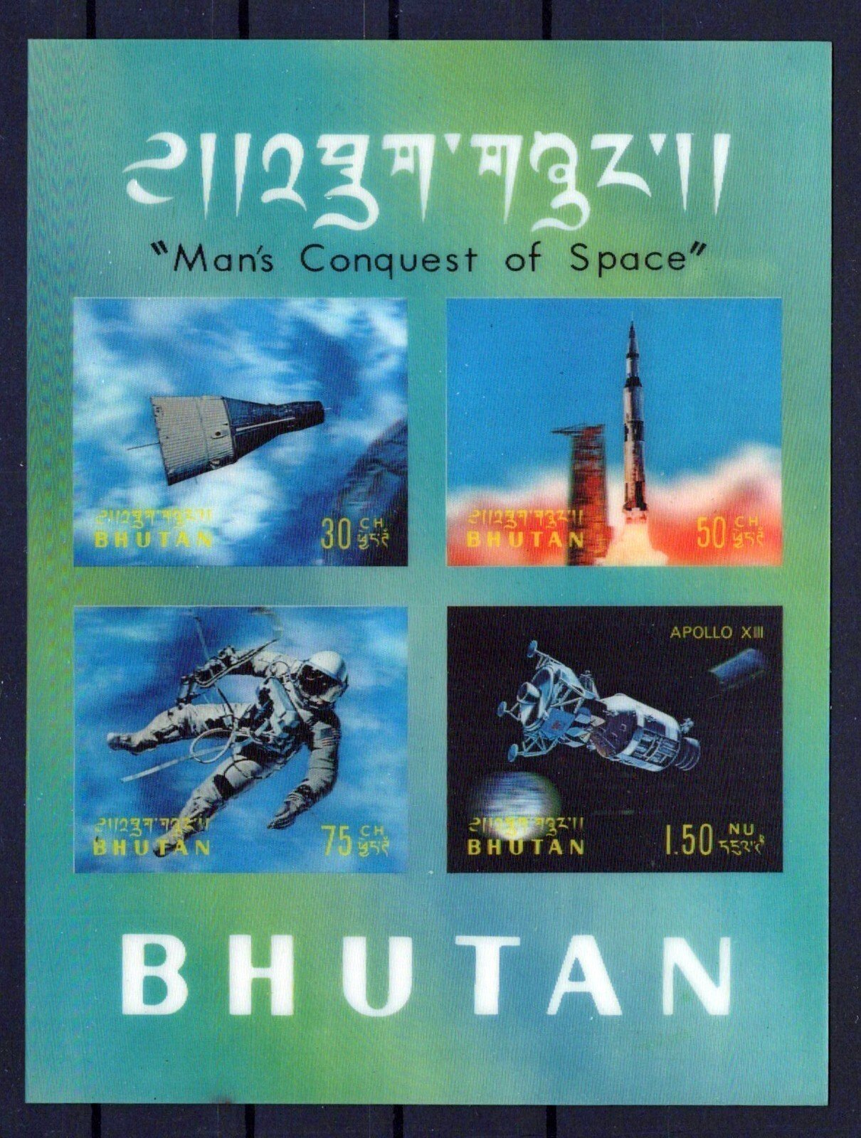 Bhutan 118-118K, 118Cm-118Ko MNH 3-Dimensional Space Rockets ZAYIX 0624M0079