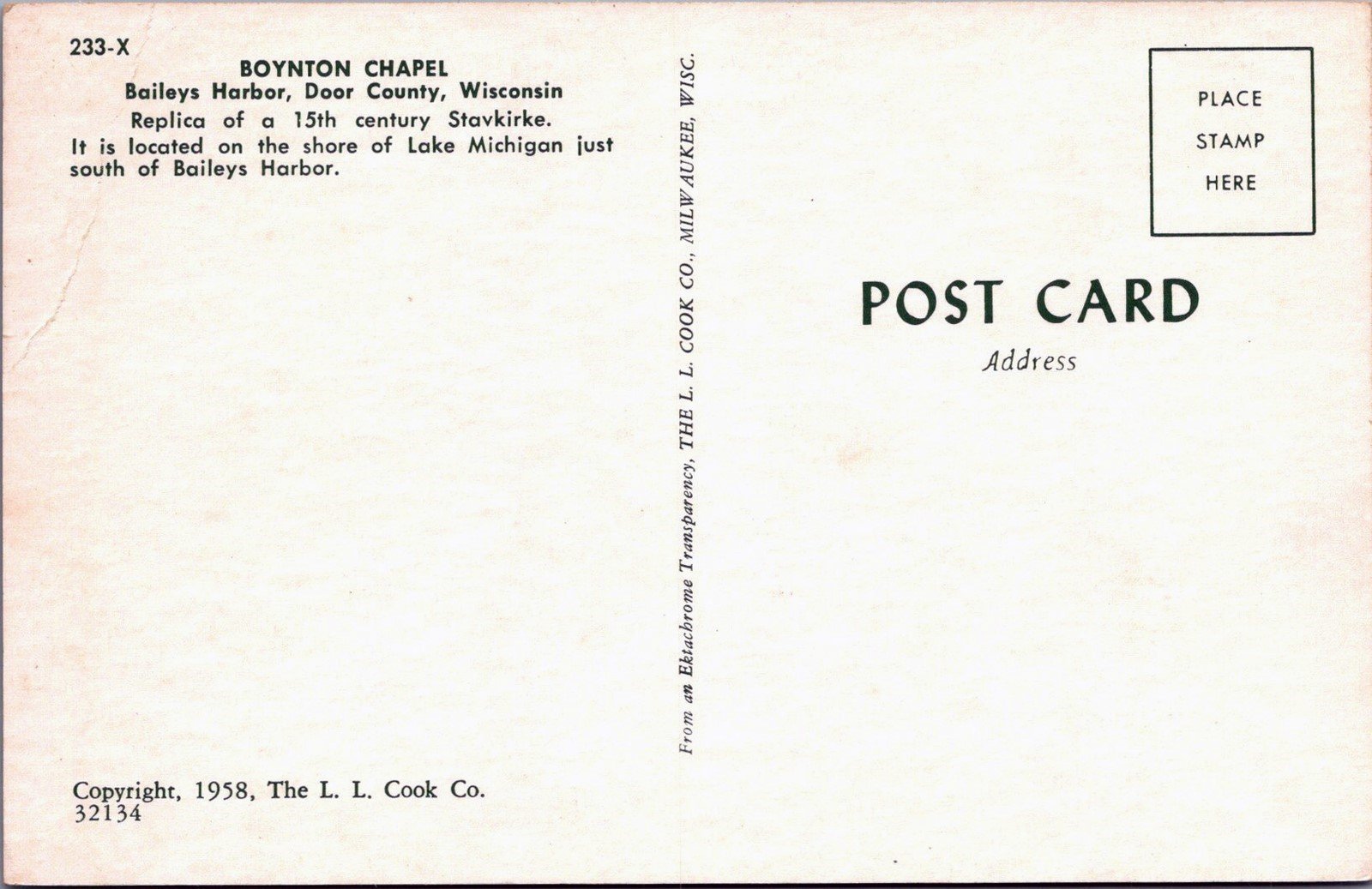 Boynton Chapel , Baileys Harbor, Door County, Wisconsin Postcard ZAYIX