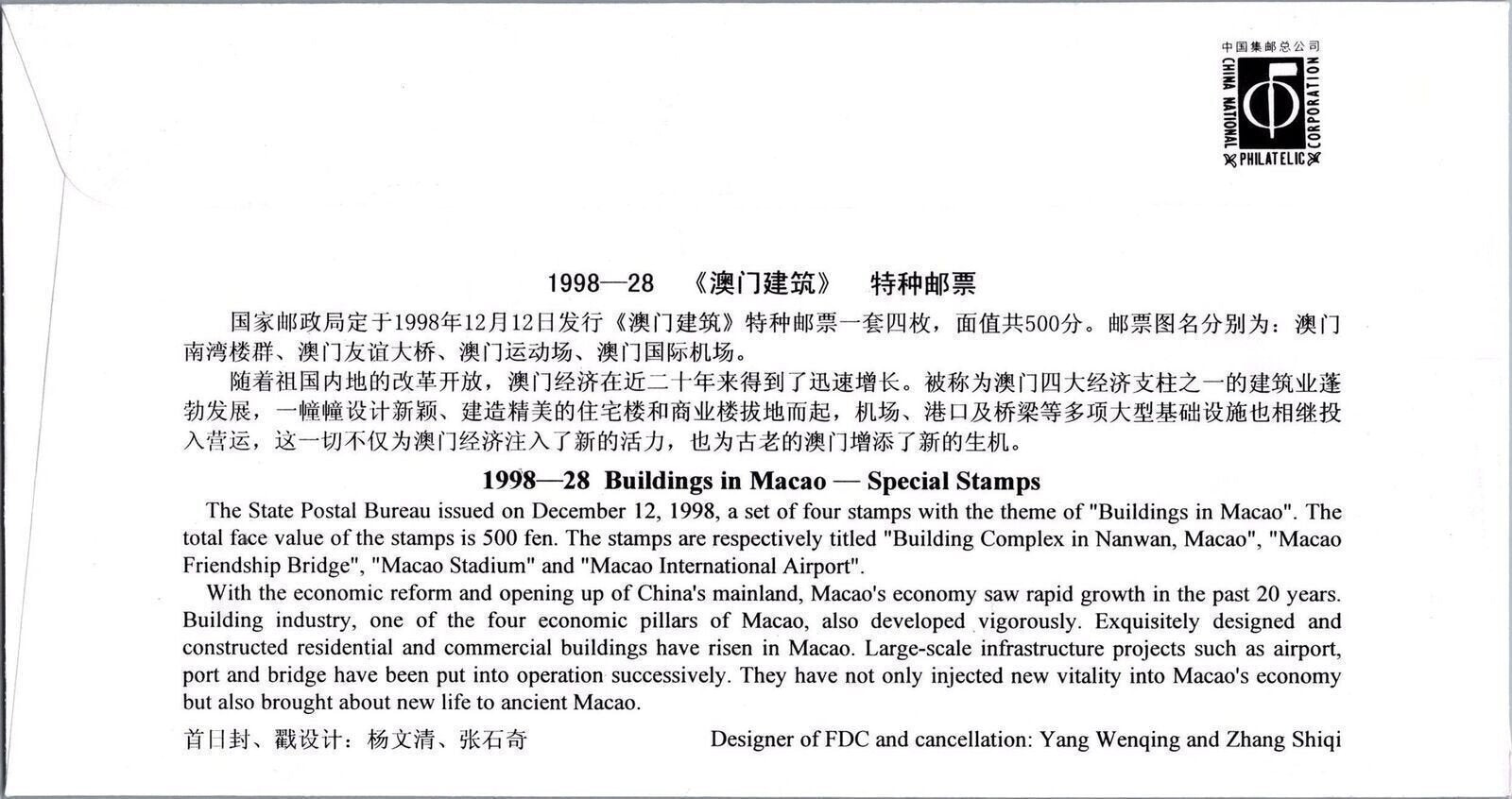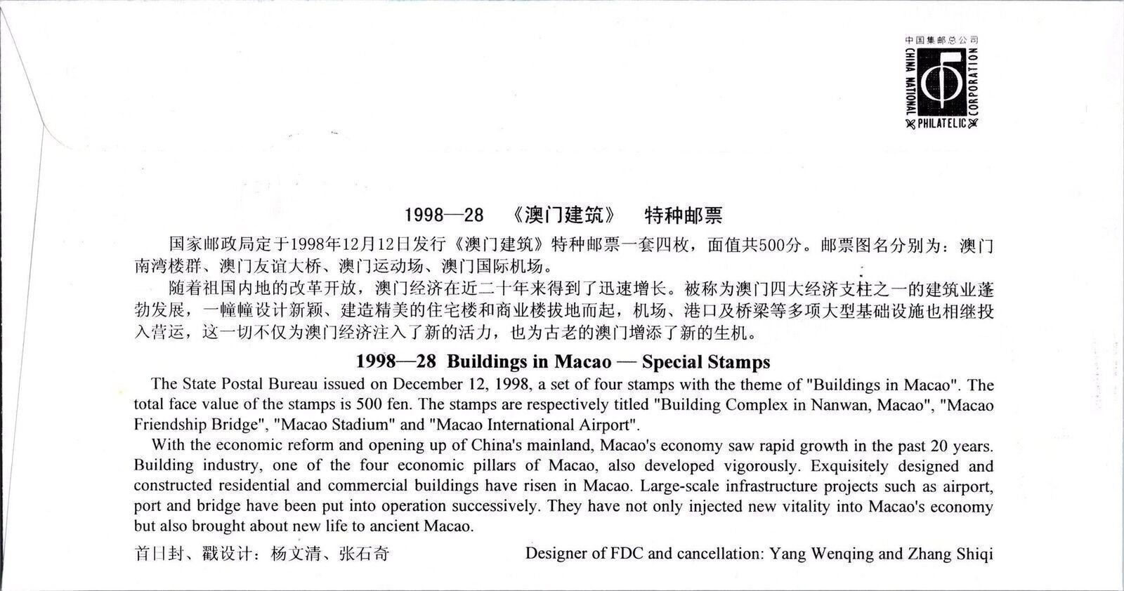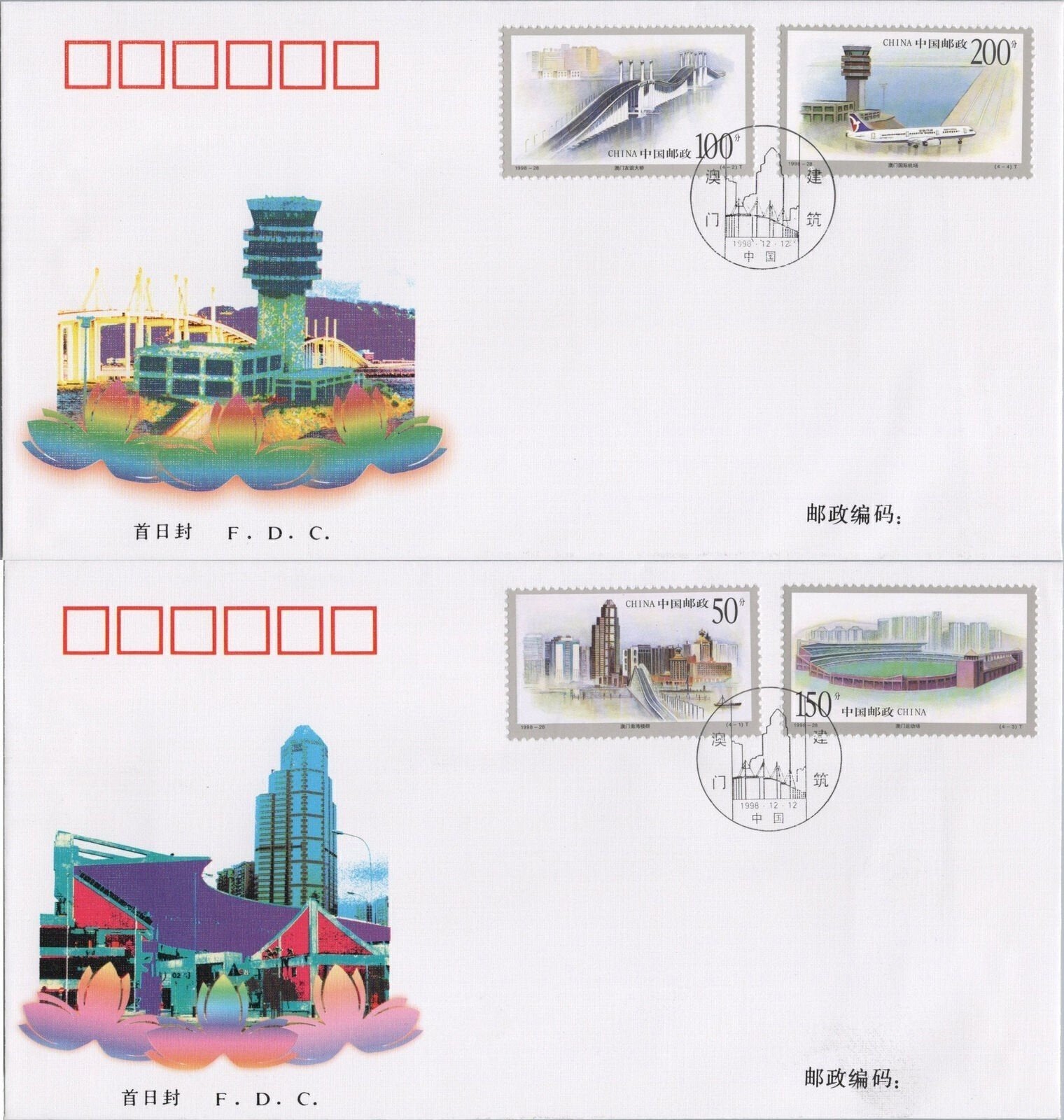 China PRC 2972-2975 Used FDC Buildings in Macao ZAYIX 101222SM19
