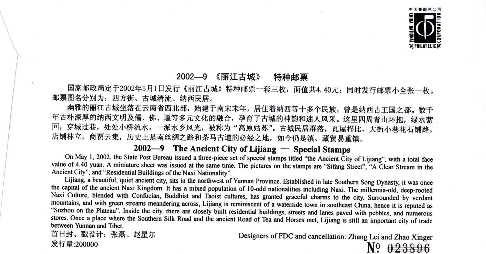 China PRC Ancient City of Lijang FDC ZAYIX 0924M0671