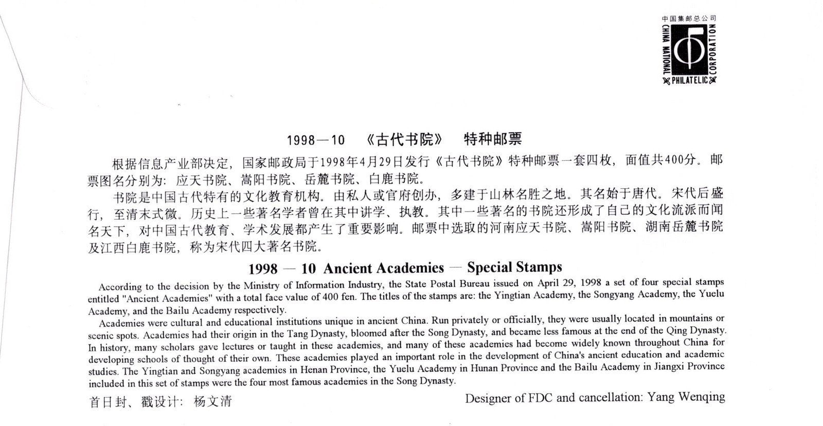 China PRC FDC Ancient Academics, Education ZAYIX 0924M0710
