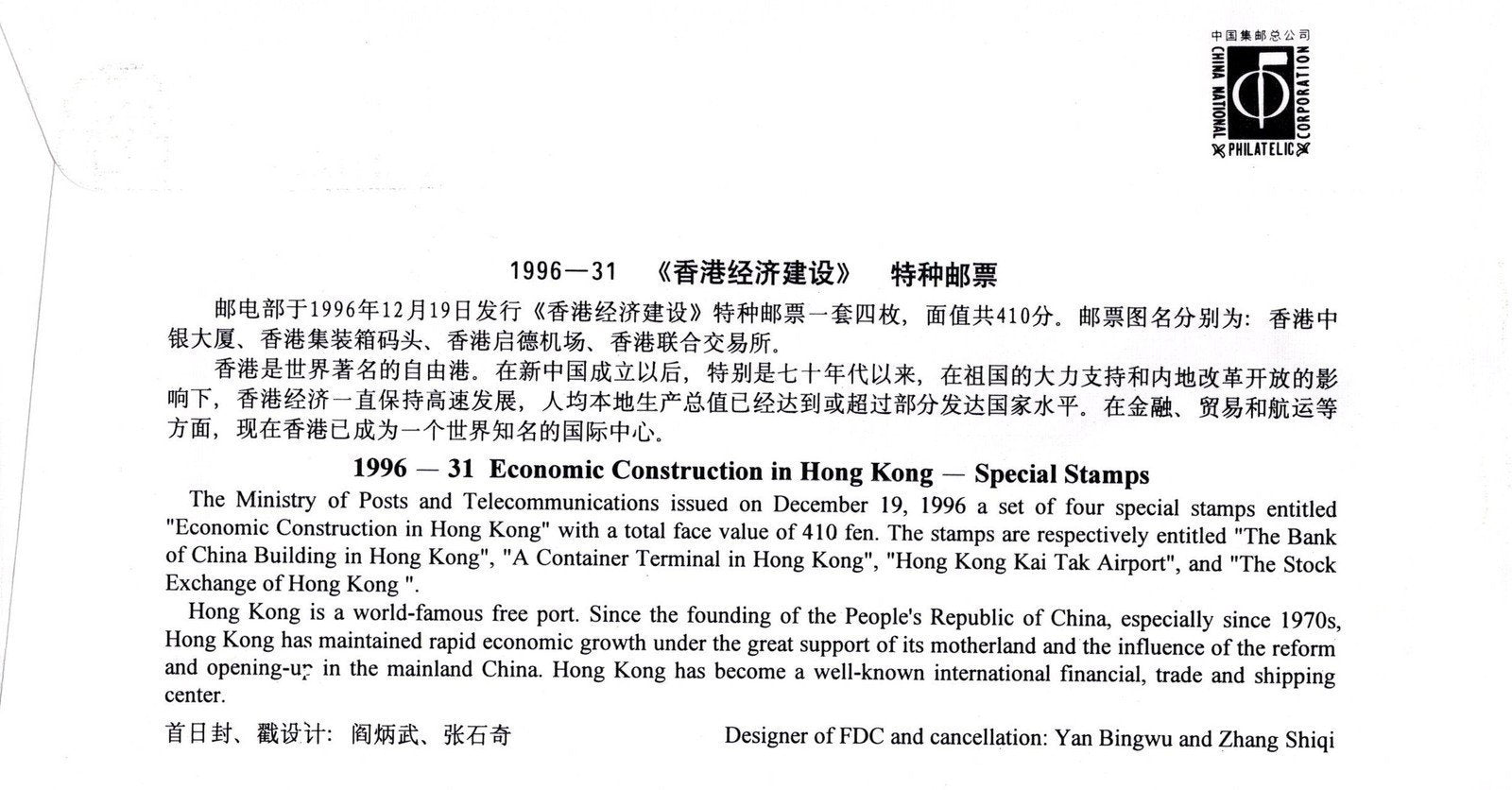 China PRC FDC Economic Construction in Hong Kong ZAYIX 0924M0700