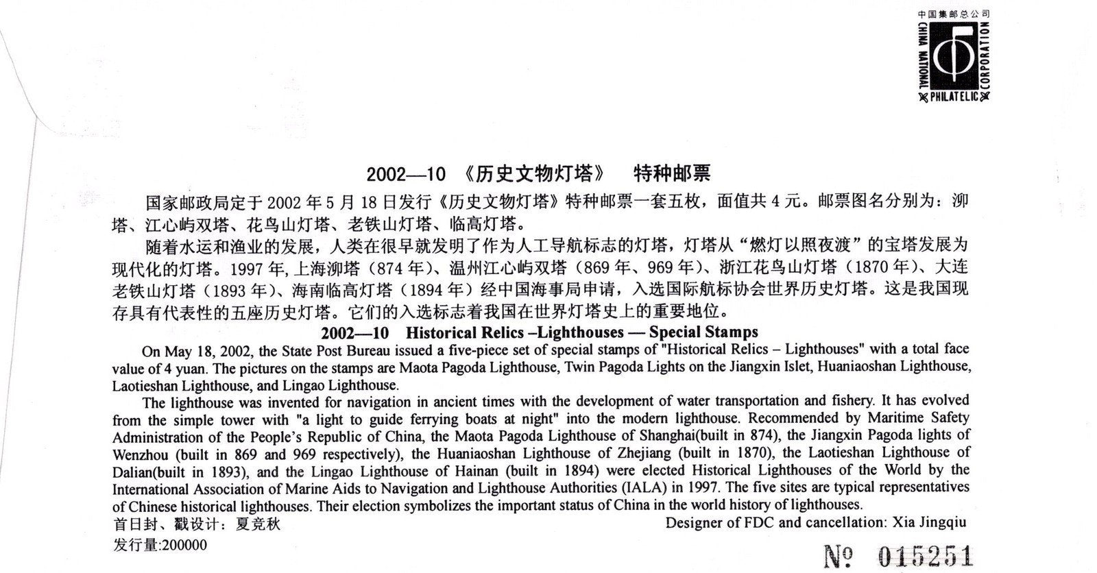 China PRC FDC Historical Relics, Lighthouses ZAYIX 0924M0702